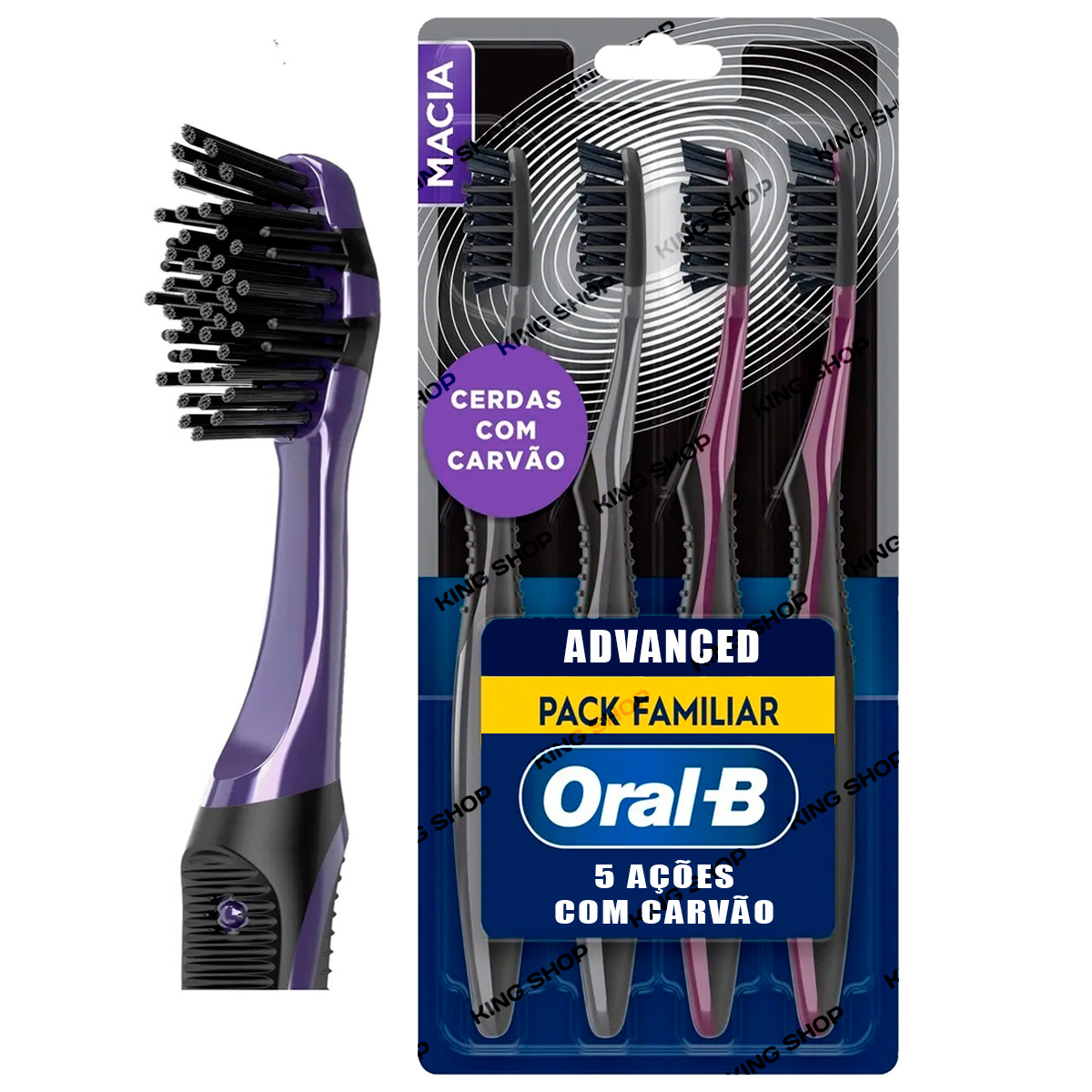 - O Kit Escova Dental Oral-B Advanced 5 Acoes Carvao traz 4 escovas que combinam tecnologia e eficacia para uma higiene bucal completa.